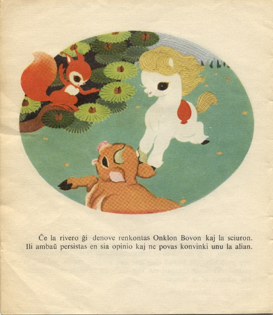 Cxe la rivero gxi denove renkontas Onklon Bovon kaj la sciuron. Ili ambaux persistas en sia opinio kaj ne povas konvinki unu la alian.