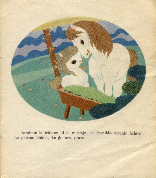 Sendinte la tritikon al la muelejo, la cxevalido revenis hejmen. La patrino lauxdas, ke gxi faris prave.